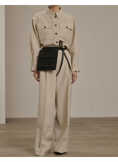 Adoptez l’élégance décontractée avec ce pantalon à pinces en lin flammé, conçu pour sublimer votre silhouette tout en offrant un confort optimal. Sa coupe large et évasée apporte une touche de modernité à un classique intemporel.