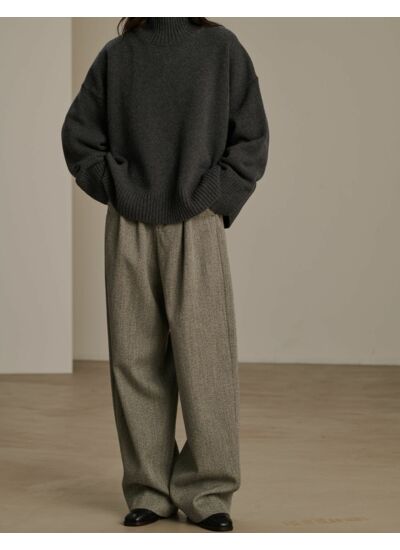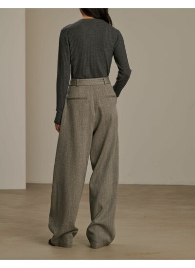 Adoptez l’élégance contemporaine avec ce pantalon à pinces en sergé de laine, conçu pour sublimer toutes vos silhouettes. Sa coupe ample et ses jambes larges offrent un confort inégalé tout en affirmant un style résolument moderne.
