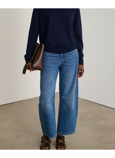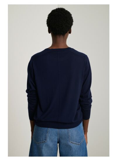 100% laine mérinos, tricotée en fine jauge. Coupe droite, manches longues, finition bord-côtes au bas du corps et aux poignets, coutures retournées, découpe au col. Lavage, blanchissement, séchage, repassage et nettoyage à suivre selon les recommandations spécifiques de la laine mérinos.