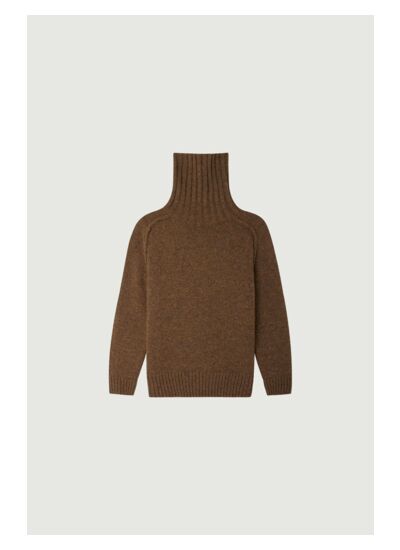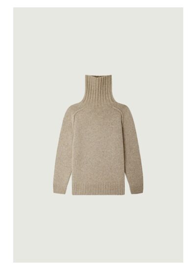Pull à col montant, coupe droite, manches longues avec emmanchures marteau et coutures retournées. Finitions bord côtes. Composition : 38% polyamide/nylon, 26% acrylique, 25% alpaga, 10% laine mérinos, 1% élasthanne. Lavage main à froid. Blanchiment interdit. Séchage tambour interdit. Repassage à 110°C maximum. Nettoyage à sec solvants normaux. Certifié OEKO-TEX Standard 100.