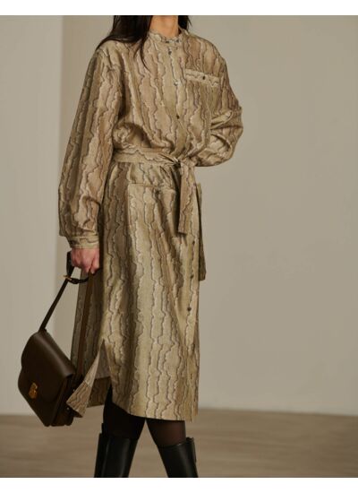 Conçue pour sublimer chaque silhouette, cette robe se distingue par son col mao boutonné et son ouverture frontale pratique. Les poches plaquées, dont deux latérales, ajoutent une touche fonctionnelle sans compromettre l’esthétique. La fluidité de la soie 100 % naturelle assure une sensation légère et agréable au porter, idéale pour vos journées comme pour vos soirées.