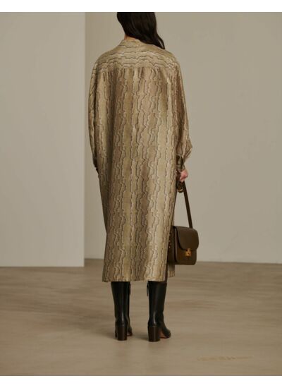 Découvrez l’élégance naturelle de la robe Bellevar, une pièce en doupion de soie qui allie confort et sophistication. Sa coupe ample et ses manches larges offrent une liberté de mouvement tout en affirmant un style raffiné et moderne.