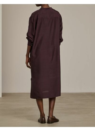 Sublimez votre silhouette avec cette robe en doupion de soie, alliant élégance et modernité. Sa coupe droite et ses manches longues larges offrent un équilibre parfait entre confort et style affirmé.