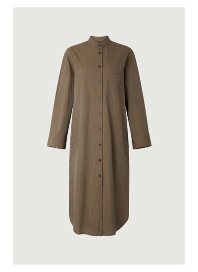 Adoptez l’élégance décontractée avec cette robe-chemise en popeline rayée, conçue pour sublimer votre silhouette tout en offrant un confort optimal. Une pièce versatile qui allie modernité et simplicité intemporelle.