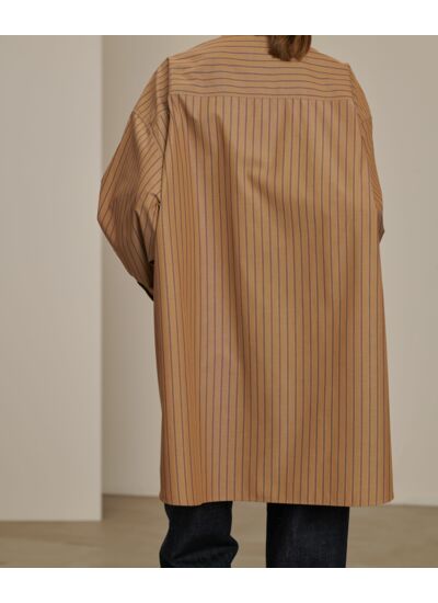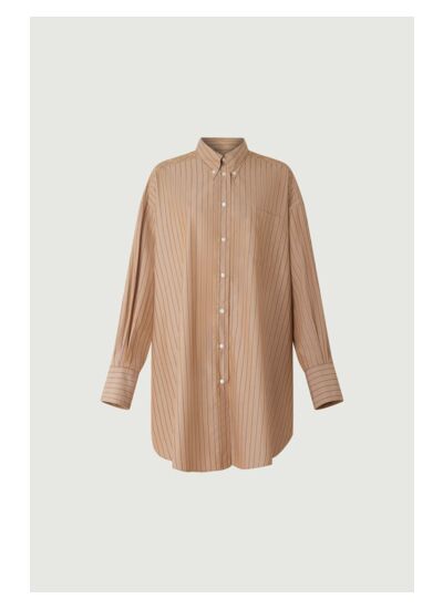 Adoptez l’élégance décontractée avec cette robe-chemise oversize en popeline rayée, un essentiel polyvalent qui allie confort et style. Sa coupe droite fluide et ses détails soignés incarnent la modernité au féminin.
