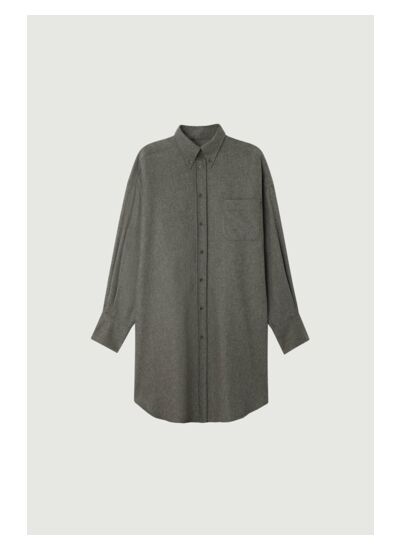 Adoptez l’élégance décontractée avec cette robe-chemise oversize en flanelle légère, idéale pour un style moderne et confortable. Sa coupe droite et ses détails soignés en font une pièce maîtresse de votre garde-robe.