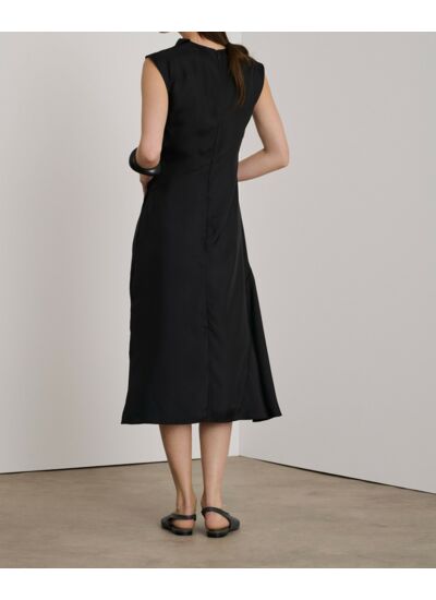 Conçue pour épouser vos formes sans contrainte, cette robe met en valeur votre féminité grâce à ses découpes précises et ses surpiqûres délicates. Le tissu en sergé de polyester recyclé offre une fluidité remarquable tout en respectant l’environnement, pour une allure à la fois moderne et responsable.
