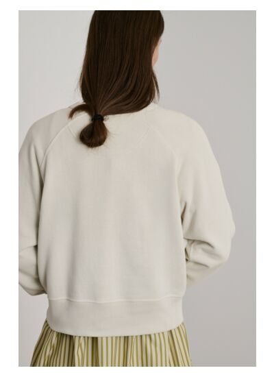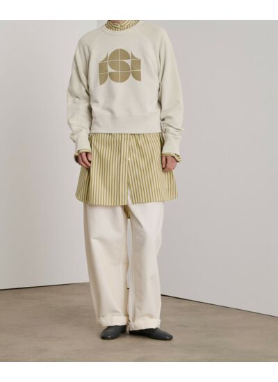 Composition : 100 % coton. Coupe droite resserrée en bas de corps. Manches longues. Col rond. Finitions bord-côtes aux poignets et à la base. Monogramme sérigraphié directement sur le textile.