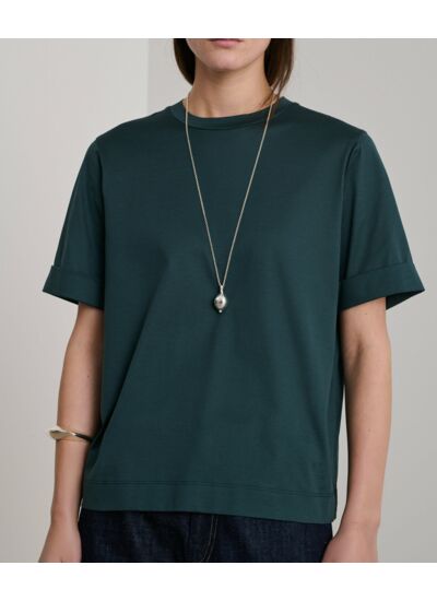 Confectionné en jersey de coton mercerisé, ce tee-shirt se distingue par sa texture lisse, brillante et soyeuse, résultat d’un traitement qui élimine l’aspect fibreux du coton. Son col rond classique et ses manches courtes à revers apportent une touche subtile et raffinée, idéale pour un look décontracté mais soigné. Le beige naturel s’adapte facilement à toutes vos tenues, du jean casual à la jupe habillée.