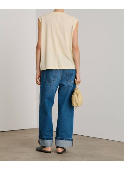 100% coton Supima® extra-fin. Coupe droite, col rond, sans manches. Détails couture milieu devant pour un effet structuré. Lavage en machine à 30°C. Blanchiment interdit. Séchage en tambour à température modérée. Repassage à 110°C maximum. Nettoyage à sec interdit. Marque : Soeur.