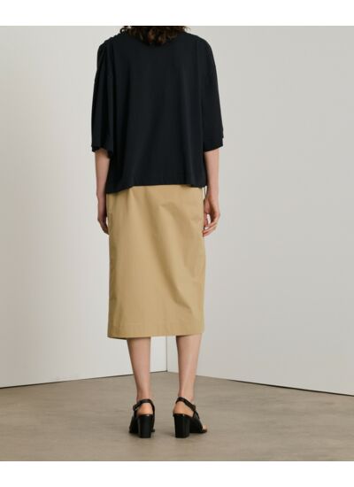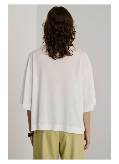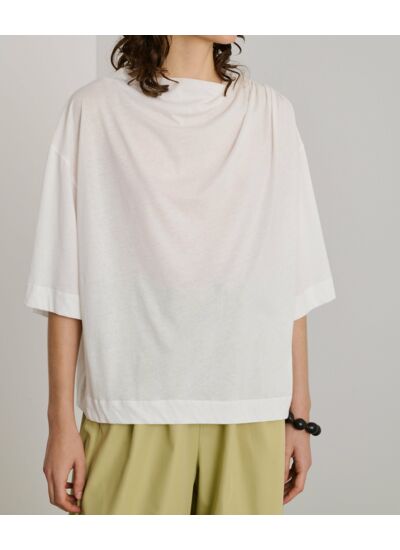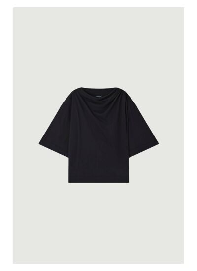 Composition : 100% coton Supima. Coupe droite ample, manches courtes, col rond. Détail drapé sur l’épaule gauche. Marque : Soeur.