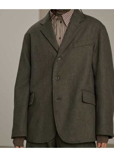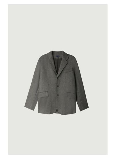 Adoptez l’élégance intemporelle avec cette veste en drap de laine gris clair, pensée pour sublimer votre silhouette avec un volume rond maîtrisé. Une pièce masculine aux lignes épurées qui affirme votre style avec subtilité.