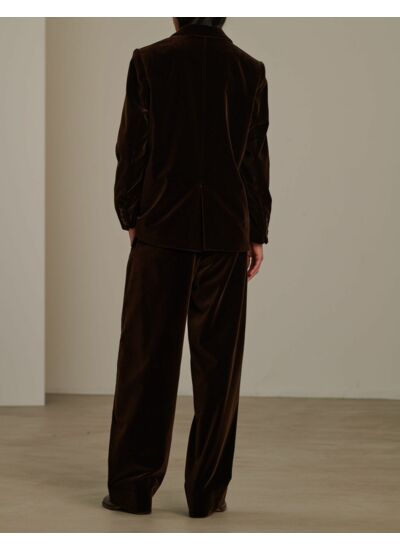 Affirmez votre style avec cette veste en velours marron, alliant élégance et modernité. Une pièce tailleur au volume ajusté qui sublime toutes vos silhouettes.
