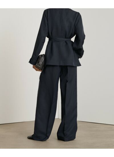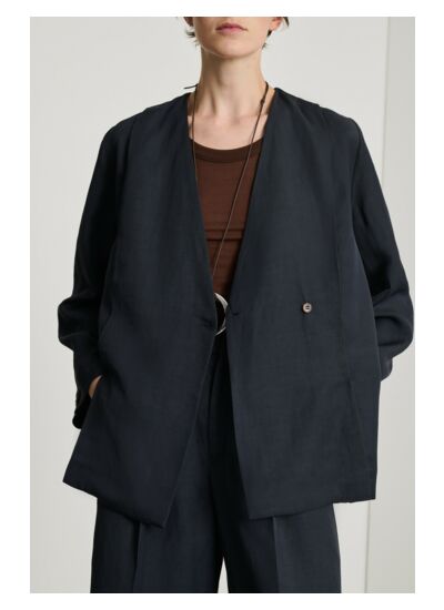 La veste DANDY garantit une silhouette affinée grâce à sa coupe droite et ses fentes latérales qui facilitent le mouvement. La ceinture amovible permet de varier les styles, du décontracté au plus structuré. Son tissu naturel, composé à 54% de viscose et 46% de lin, apporte douceur et durabilité.