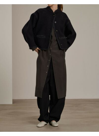 Conçue en laine vierge épaisse, cette veste vous garantit chaleur et durabilité sans compromis sur la légèreté. Son design ample convient à toutes les morphologies et facilite le superposition, idéale pour affronter les journées fraîches avec style.