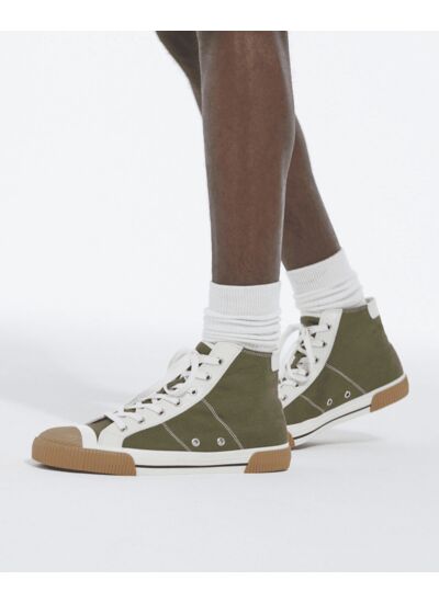 Conçues pour accompagner vos journées avec caractère, ces baskets allient la robustesse du canvas à la sophistication du cuir, offrant un look à la fois brut et raffiné. Leur silhouette montante assure maintien et confort, tandis que les détails en cuir apportent une touche de luxe discrète, idéale pour sublimer vos tenues casual ou plus travaillées.