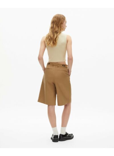 Confectionné en coton et lin, ce bermuda allie légèreté et respirabilité, parfait pour les journées ensoleillées. Sa taille haute souligne la taille, tandis que les plis devant apportent une touche sophistiquée. Les poches latérales italiennes et les poches dos passepoilées ajoutent fonctionnalité et style, pour une allure soignée au quotidien.