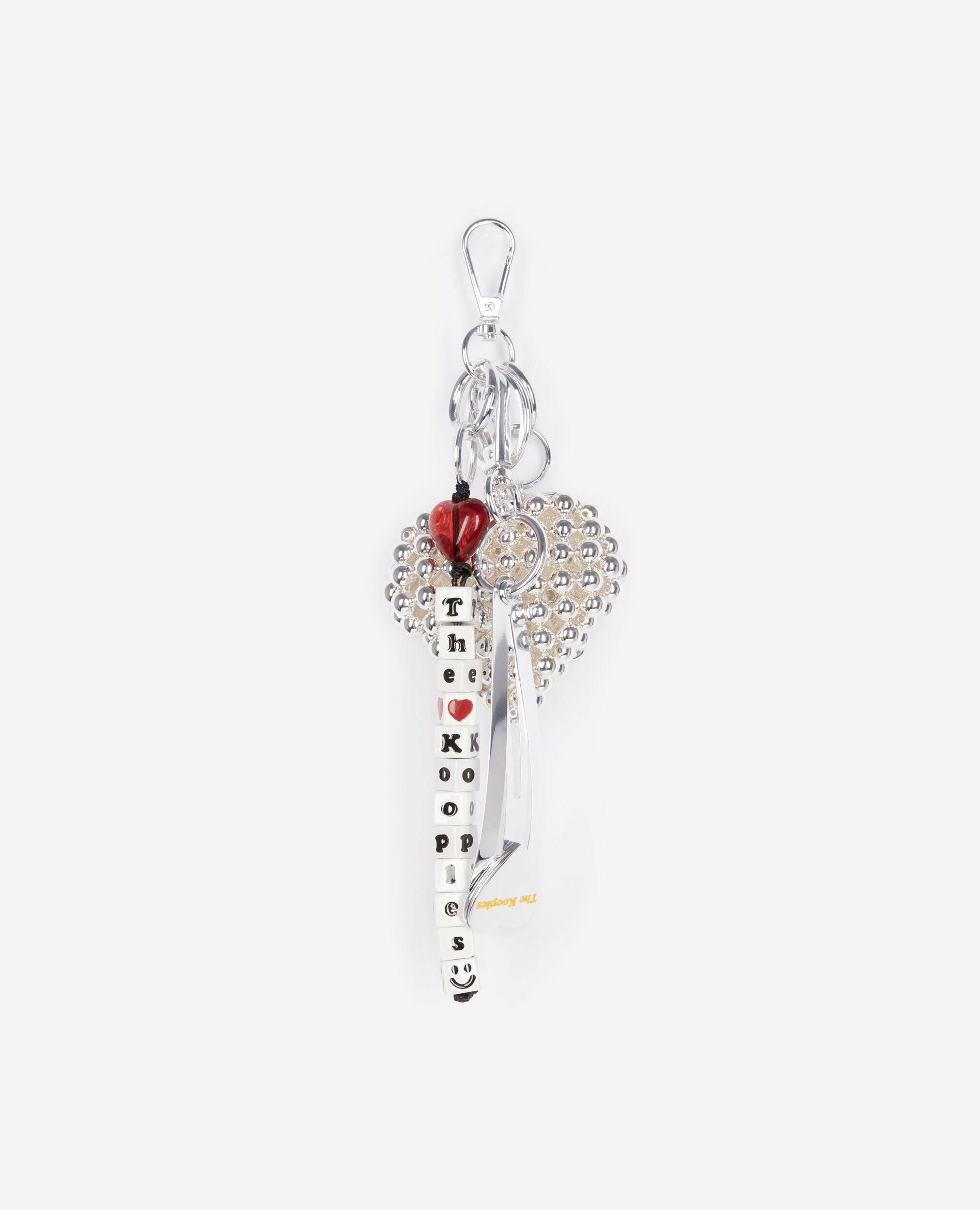 Dimensions précises non communiquées. Marque : The Kooples. Finition : argentée. Type de produit : bijou de sac barrette.