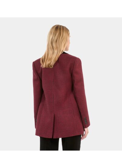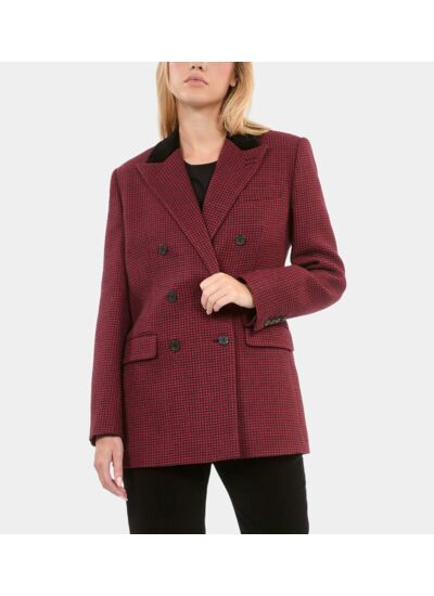 Veste femme The Kooples en laine, coupe droite, revers en pointe avec velours, manches longues, boutons aux poignets, fermeture double boutonnage, poches passepoilées et à rabat, boutons en corne, tissu italien.