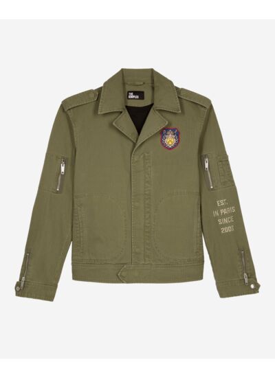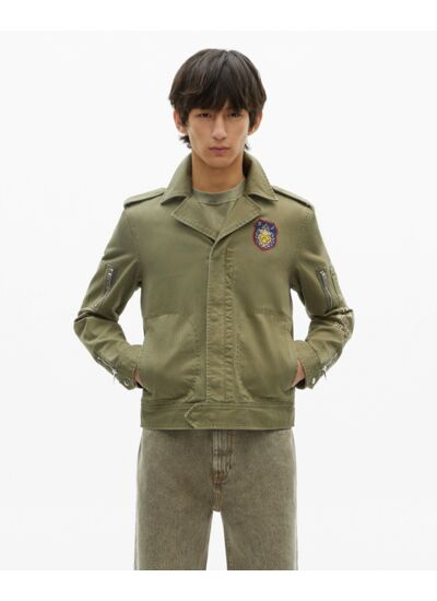 Blouson homme The Kooples, coupe droite, col cranté, pattes d’épaules avec pressions cachées. Patch blason poitrine, manches longues avec zip et pressions aux poignets, poches zippées aux manches, poches simple passepoilées. Broderie manche gauche, fermeture zippée avec pressions cachées, métallerie argentée. Broderies et patches brodés Skull guitar au dos.