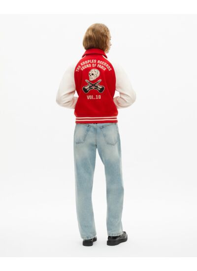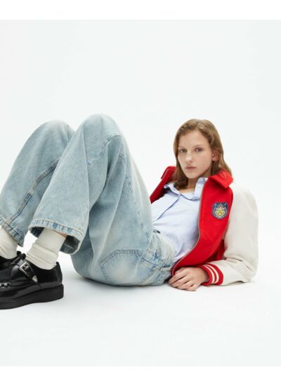 Fabriqué par The Kooples, ce blouson se distingue par ses finitions soignées : laine et cuir de qualité, coupe large, col classique, manches longues en cuir, emmanchure raglan, fermeture zippée, poches double passepoils, patch blason poitrine, broderie dos, bords côtes.