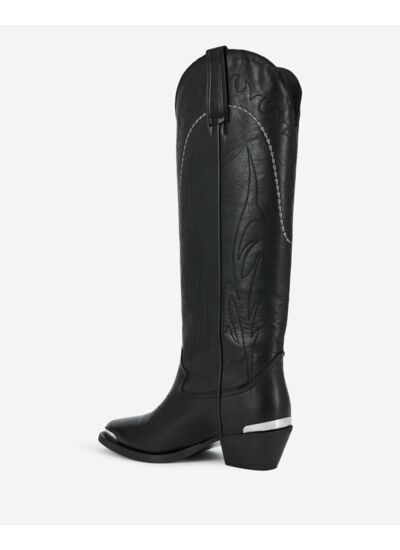 Affirmez votre style avec ces bottes western en cuir noir, alliant audace et élégance intemporelle. Un classique revisité par The Kooples pour sublimer chaque tenue.