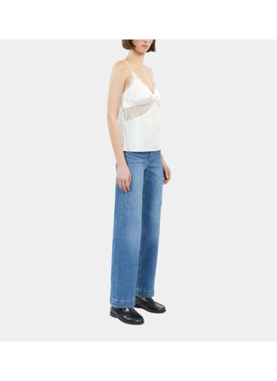 Top à bretelles en soie écrue avec dentelle ton sur ton. Décolleté en V, transparence sous la poitrine, fines bretelles ajustables, zip latéral invisible. Marque : The Kooples.