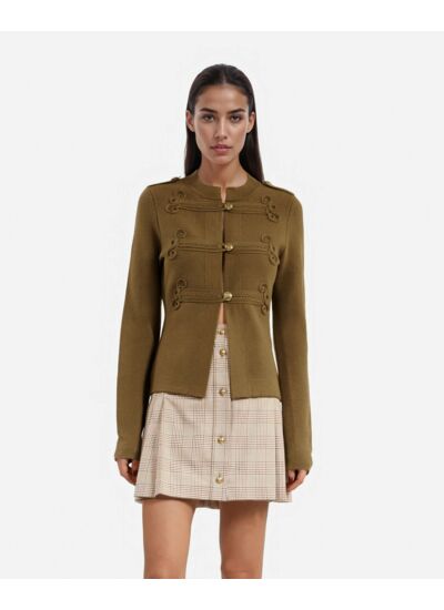 Fabriqué par The Kooples, ce modèle présente des manches longues, un col officier, des pattes d’épaule et un boutonnage devant avec des boutons héritage. Sa coupe droite et ajustée valorise la silhouette. Détails brandebourgs ajoutés pour une finition soignée.