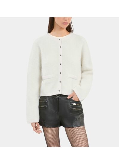 Adoptez l’élégance naturelle avec ce cardigan en alpaga et laine écru signé The Kooples. Une pièce intemporelle qui allie douceur et style pour sublimer vos tenues au quotidien.
