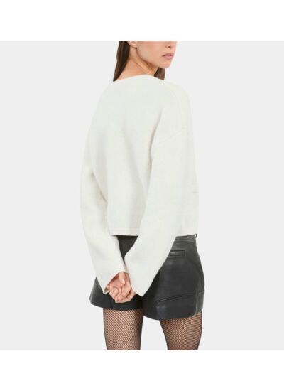 Matière : mélange alpaga et laine. Couleur : écru. Coupe : féminine, ajustée sans serrer. Entretien : nettoyage à sec recommandé.