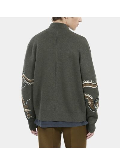 Ce cardigan offre un confort optimal grâce à sa laine mélangée, idéale pour vous accompagner lors des fraîches journées. Sa coupe droite garantit une liberté de mouvement, tandis que le col montant protège efficacement du vent. La broderie dragon ajoute une signature unique, parfaite pour ceux qui souhaitent se démarquer avec subtilité.