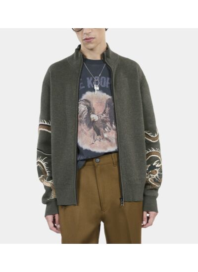 Fabriqué par The Kooples, ce cardigan homme est en laine mélangée, doté d’une coupe droite, d’un col montant, de manches longues avec broderie dragon et d’une fermeture zippée.