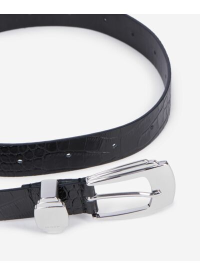 Cette ceinture femme The Kooples est réalisée en cuir effet crocodile avec une métallurgie argentée. Elle mesure 3 cm de largeur et la taille T1 correspond à une longueur de 82 cm.