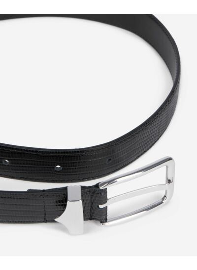 Ceinture homme The Kooples en cuir embossé effet crocodile, boucle en métal argenté, largeur 3 cm, longueur T1 87 cm.