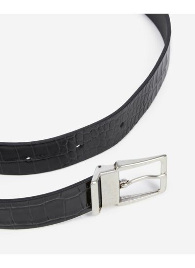 Conçue pour sublimer vos looks, cette ceinture impose son allure grâce à son cuir texturé qui rappelle la peau de crocodile. Son noir profond s’adapte à toutes les palettes, du plus casual au plus sophistiqué, offrant une touche de modernité et de raffinement. La finesse de sa boucle souligne la qualité et le savoir-faire de la marque.
