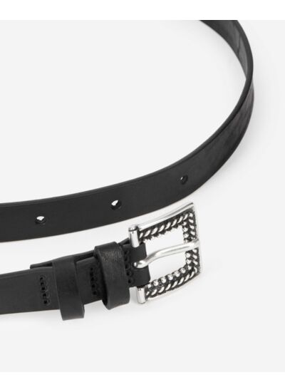 Affirmez votre style avec cette ceinture fine en cuir noir signée The Kooples, un accessoire qui allie élégance et caractère. Son design épuré et sa finition vintage apportent une touche sophistiquée à toutes vos tenues.