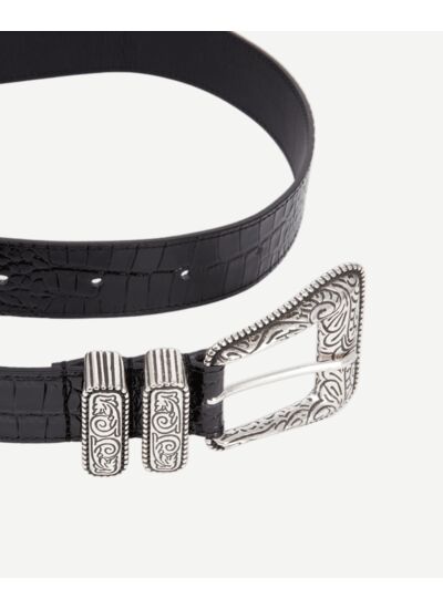 Affirmez votre style avec cette ceinture large au design audacieux, sublimée par un cuir embossé effet crocodile. Un accessoire incontournable pour structurer vos tenues avec élégance et caractère.