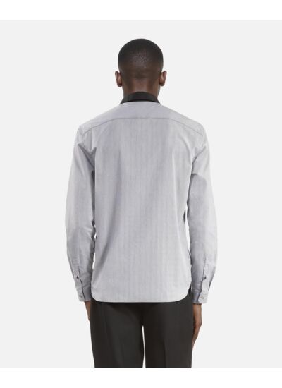 Réponse. La chemise dispose d’un col classique contrasté, de boutons noirs et d’une patte de boutonnage simple.