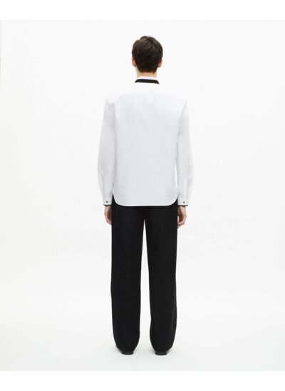 Conçue pour l’homme qui cherche une coupe ajustée et un design soigné, cette chemise se distingue par son col officier épuré et ses détails subtils comme le ruban contrasté au col et aux manches. Les boutons blancs apportent une touche de luminosité tandis que le rivet au bas des manches souligne la qualité de finition. Parfaite pour une tenue casual chic ou un look plus formel, elle s’adapte à toutes vos envies.
