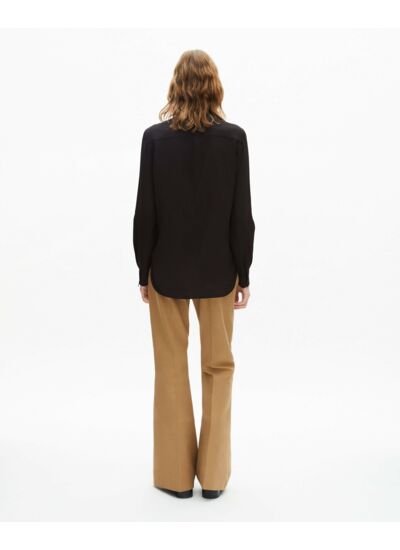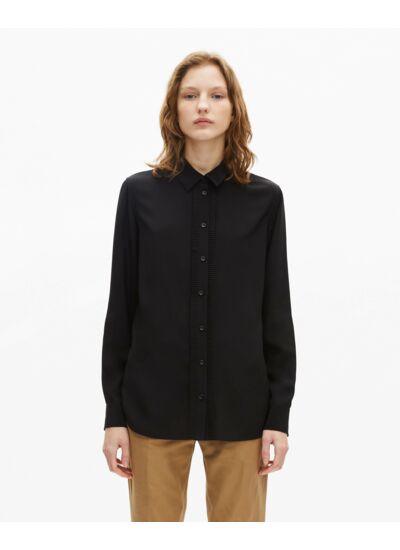 Marque : The Kooples. Matière : soie. Coupe droite. Col classique. Manches longues avec boutons aux poignets. Patte de boutonnage avec plissage. Boutons noirs.