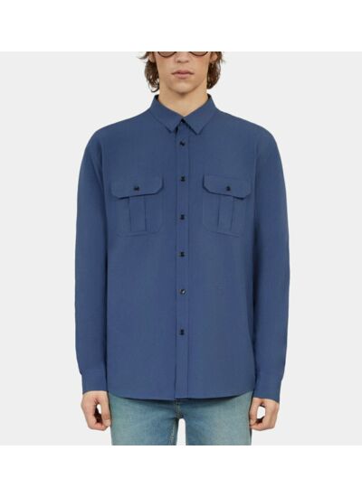 Coupe droite, col classique, manches longues, poignets avec rivet, patte de boutonnage américaine, poches poitrine plaquées à rabat, boutons noirs. Marque : The Kooples.