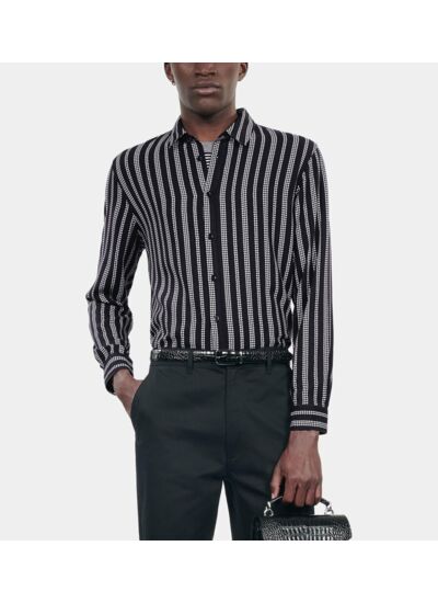 Affirmez votre style avec cette chemise The Kooples au motif pied de poule revisité en rayures noir et blanc. Une pièce audacieuse qui allie élégance et modernité pour un look impeccable.