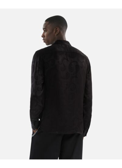 Réponse : La chemise est en jacquard, offrant une texture riche et un motif plumes distinctif.