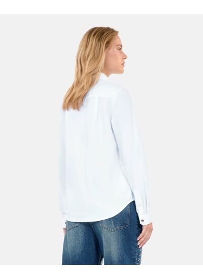 Fabriquée en popeline 100 % coton, elle présente une coupe cintrée, un col classique et des manches longues avec poignets boutonnés. Entretien simple : lavage en machine à 30 degrés recommandé.