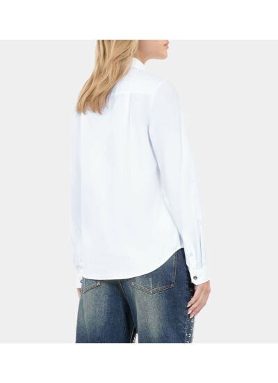 Confectionnée dans une popeline de coton d’une grande finesse, cette chemise offre une texture lisse et légère, idéale pour un confort durable. Sa coupe ajustée souligne la silhouette avec subtilité, tandis que son blanc éclatant apporte une luminosité naturelle à votre look. Polyvalente, elle se porte aussi bien sous un blazer que seule, pour une allure nette et maîtrisée.
