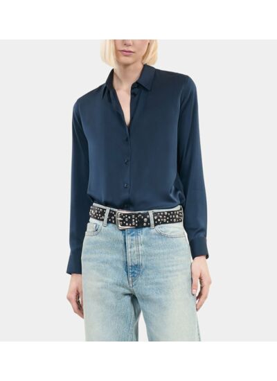 Sublimez votre allure avec cette chemise en soie bleu marine signée The Kooples, une pièce qui allie élégance intemporelle et modernité. Sa couleur profonde et sa matière noble apportent une touche sophistiquée à toutes vos tenues.