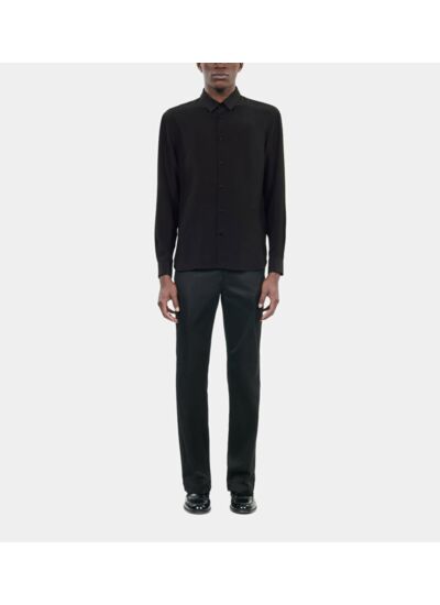 Conçue pour ceux qui recherchent l’alliance parfaite entre confort et raffinement, cette chemise en soie offre une sensation légère et agréable au toucher. Son coloris noir profond s’adapte aussi bien à une tenue formelle qu’à un look décontracté, apportant une touche de modernité et de luxe discret. The Kooples signe ici une pièce versatile, pensée pour durer et traverser les saisons sans jamais perdre de son éclat.