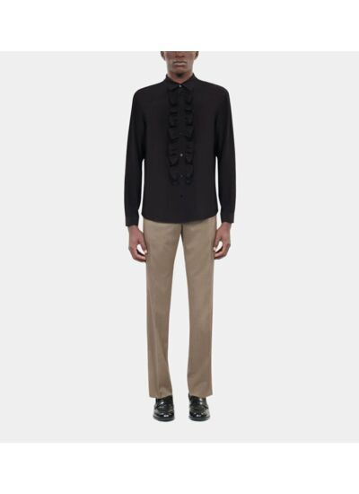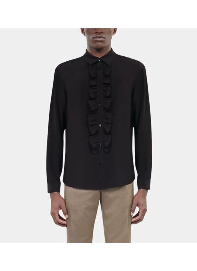 Conçue pour ceux qui recherchent l’alliance parfaite entre confort et raffinement, cette chemise en soie offre une sensation légère et agréable au toucher. Son coloris noir profond s’adapte aussi bien à une tenue formelle qu’à un look décontracté, apportant une touche de modernité et de luxe discret. The Kooples signe ici une pièce versatile, pensée pour durer et traverser les saisons sans jamais perdre de son éclat.