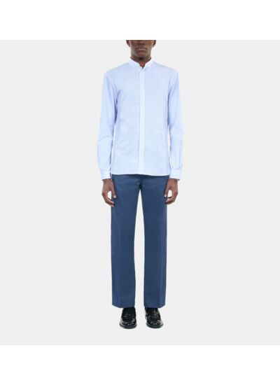 Conçue pour l’homme contemporain, cette chemise ajustée allie sophistication et confort. Les rayures bleues apportent une touche dynamique à la blancheur immaculée du tissu, tandis que le col officier souligne une allure singulière et soignée. Sa coupe près du corps valorise la silhouette sans contraindre, idéale pour une journée au bureau ou une soirée habillée.
