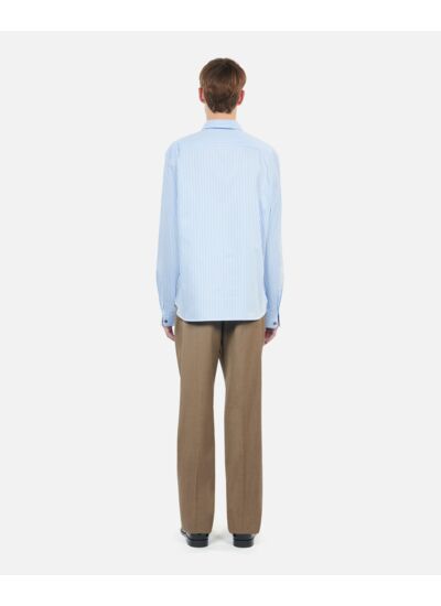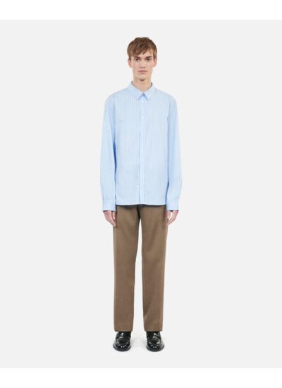 Conçue pour sublimer la silhouette, cette chemise marie rayures bleues et blanches dans un équilibre parfait. Son col classique et sa patte de boutonnage américaine apportent une touche d’authenticité tandis que les manches longues et le rivet au bas de manche soulignent une finition soignée. Les boutons nacrés ajoutent une note précieuse, révélant un souci du détail propre à The Kooples.